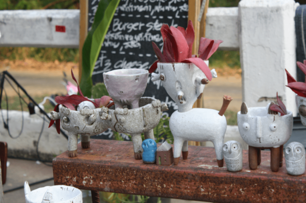 Environmental advocacy is a common theme that is shared with another Isaan artist, Tong Talayla. Tong is a ceramics maker, who creates beautiful bowls and figurines from resources found right in his heartland.