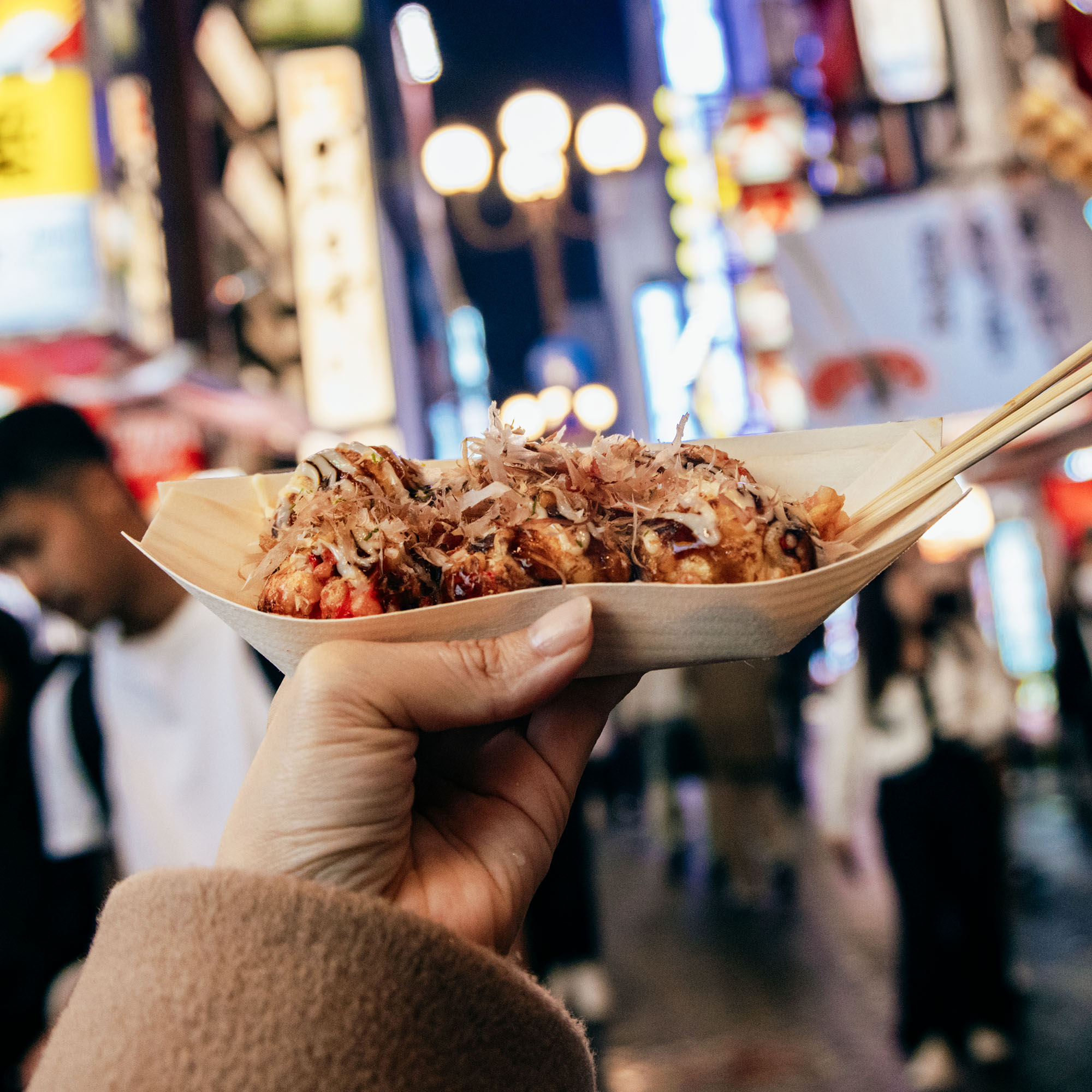 Experience Dotonbori’s neon-lit streets and street food scene