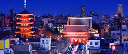 at the oldest established temple in Japan, where you can explore the Nakamise shopping street and pray at the iconic Kaminarimon gate