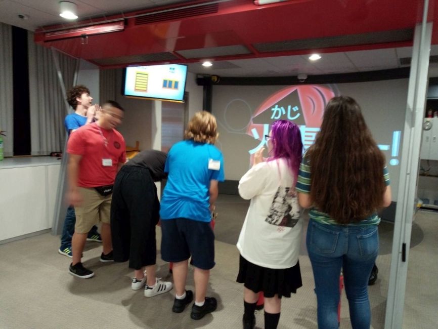 The Tokyo session 2 students spent their first day (7/9) learning dilligently in their classes. We took an excursion to Ikebukuro Bosaikan (Life Safety Learning Center), to learn about fires and Earthquakes. Students participated in a simulated fire situation, they screamed "Kaji-da! (fire! in Japanese), and used fire extinguishers to put out a make-believe fire. Students also learned how to follow emergency signs to an exit in a simulated smoke house. They also learned what being in an earthquake felt like!